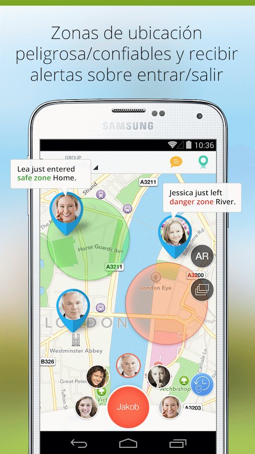 ✓ Saiba quando seus filhos saírem da escola ou da casa dos avós e delimite zonas de perigo no mapa; assim, você será notificado quando seus familiares entrarem nessa zona
